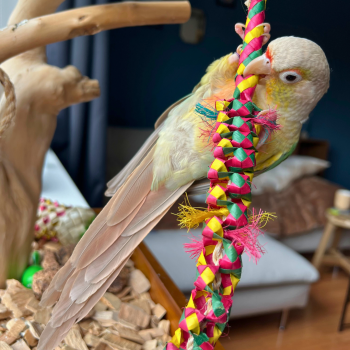 The Napa Caterpillar is a playful and challenging toy for birds designed to stimulate their natural foraging behavior. This unique toy is long, slim and has a lot of space to hide food or snacks between. Making the caterpillar perfect for birds to pull on, nibble and demolish, providing hours of fun and mental challenge.