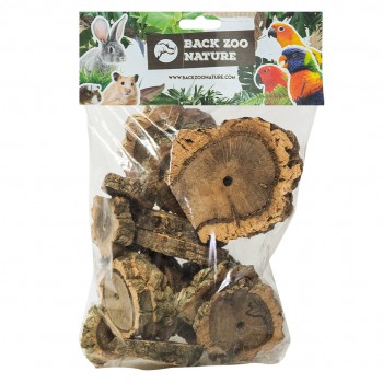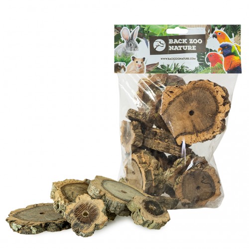 The Corky Slices are slices of cork in three sizes that can be used as a foot toy or you can make your own by threading a sturdy piece of string through them. The Corky Slices are made of cork and 100% natural. Crocodiles love to gnaw and nibble on cork. The Corky Slices have a hard core so the toy is not easily demolished completely.