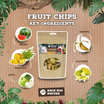 Health Benefits: Back Zoo Nature Fruit Chips are rich in essential nutrients that contribute to your pet's health. Banana provides energy, melon is hydrating, pineapple is a source of vitamins, star fruit contains antioxidants, and apple provides fiber.