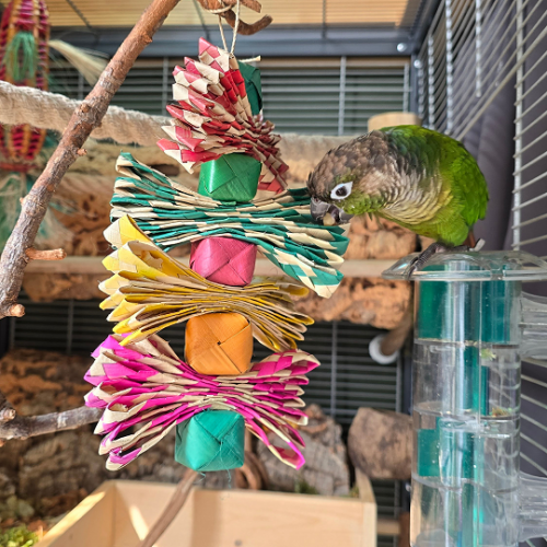 Birds are inspired to nibble, tug, and explore while following their natural instincts. Made from sustainable, eco-friendly materials like palm leaves, Abaca fiber, and other renewable resources, the Palmleaf Tower is a thoughtful choice for both your birds and the planet.