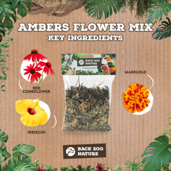 De Amber's Flower Mix is een kleurrijke bloemenmix van rode zonnehoed, goudsbloem en hibiscus. Naast een heerlijke geur en mooie kleuren biedt deze mix ook een scala aan voedingsvoordelen voor je huisdier.
