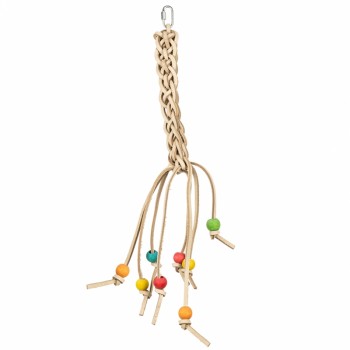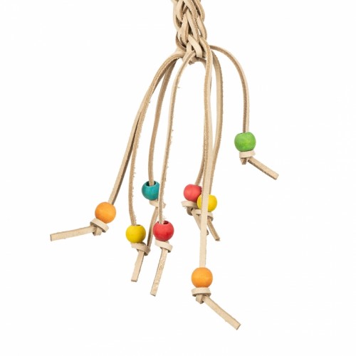 De Leather Weather is een wat zachter speeltje. De Leather Weather is gemaakt van leer dat is gevlochten in een vlecht. Als extra zijn er onderaan nog wat verschillende kleurrijke kralen van hout geknoopt. De Leather Weather is geschikt voor middelgrote kromsnavels zoals: Caiques, Bonte Boertjes, Pyrrhura's, Valkparkieten, Lori's en Amazone Papegaaien. Door het zachte materiaal en de vrolijke gekleurde kralen onderin is dit een leuk knabbelspeeltje voor kromsnavels.