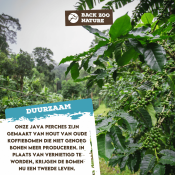 De multi perch small is een duurzame zitstok met meerdere takken gemaakt van oersterk Java hout, afkomstig van oude koffiebomen uit Indonesië. Wanneer deze bomen niet genoeg bonen meer produceren, worden ze niet vernietigd maar hergebruikt voor vogelbenodigdheden zoals onze zitstokken. Daarnaast zorgt de hardheid van het hout ervoor dat de zitstok lang mee gaat. Dubbel zo duurzaam dus!