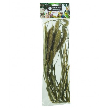 Back Zoo Nature Setaria is een natuurlijke grassensoort met aren, met zorg geoogst, gedroogd en verpakt om veilig te geven aan je kromsnavel of knaagdier. 100% Natuurlijk en onbewerkt. Setaria, ook wel naaldaar of vossenstaart gierst genoemd, komt voor in vrijwel de hele wereld en heeft vele soorten. Setaria is een aanvullende voeding met een hoog acceptatie gehalte: vogels en knaagdieren vinden het heerlijk om lekker aan te knabbelen! Geschikt voor alle soorten vogels en zaadetende knagers zoals ratten, muizen, gerbils en hamsters.