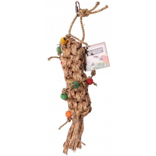 De Woven Grass Pinata Large is een 100% natuurlijk snipperspeeltje voor kromsnavels. De Woven Grass Pinata is gemaakt van gewoven zeegras. Aan de zijkanten van de Pinata hangen gekleurde houten kralen. Kromsnavels vinden het geweldig om deze Woven Grass Pinata uit elkaar te trekken, zo hebben ze urenlang snipperplezier. De Pinata is geschikt voor grote parkieten en alle soorten papegaaien.
